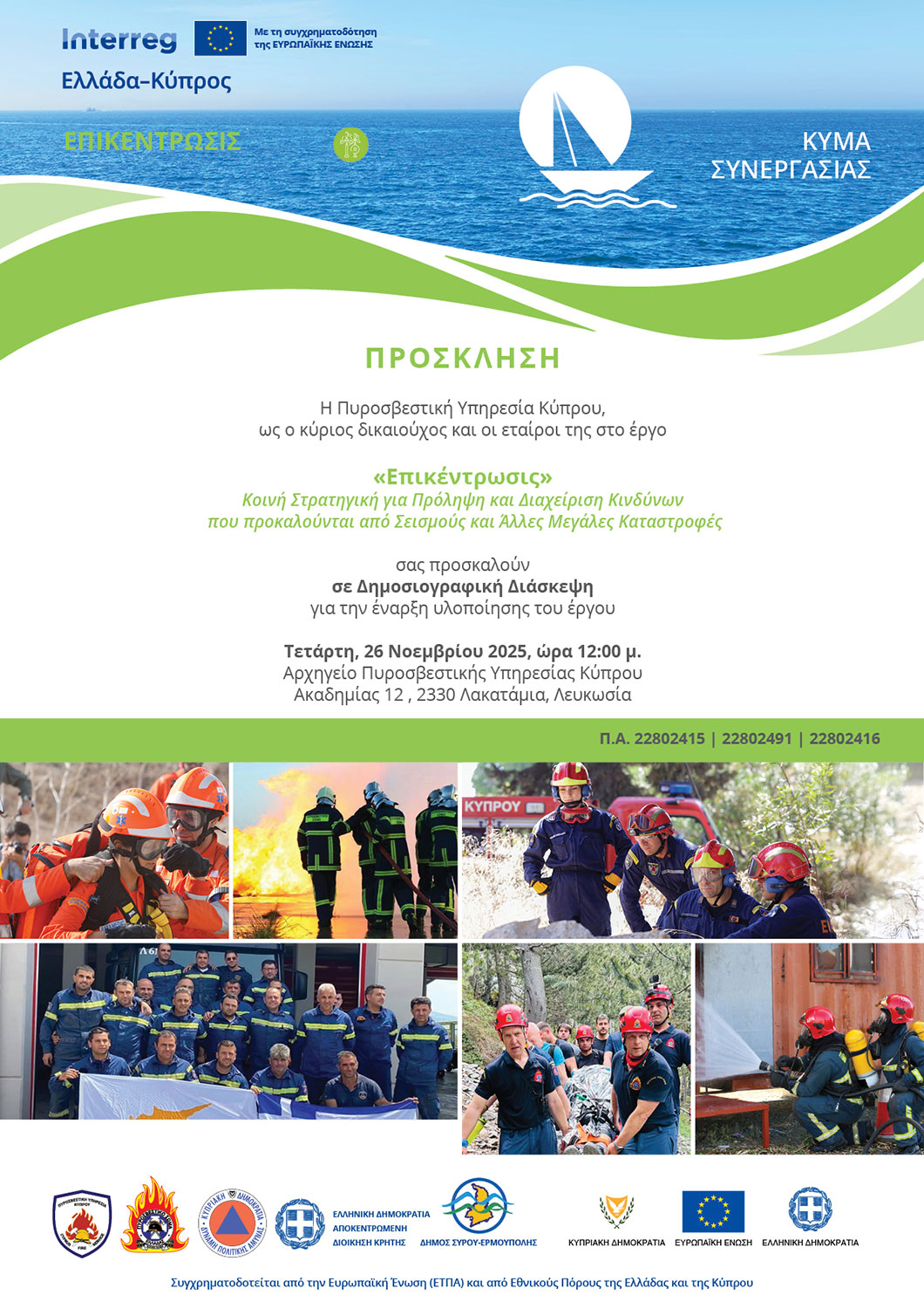 Το έργο “ΕΠΙΚΕΝΤΡΩΣΙΣ” εντάσσεται στο Πρόγραμμα Συνεργασίας Interreg Ελλάδα – Κύπρος 2021–2027 και στοχεύει στην ενίσχυση της πρόληψης και διαχείρισης των συνεπειών από σεισμούς και άλλες φυσικές καταστροφές στην Ανατολική Μεσόγειο.